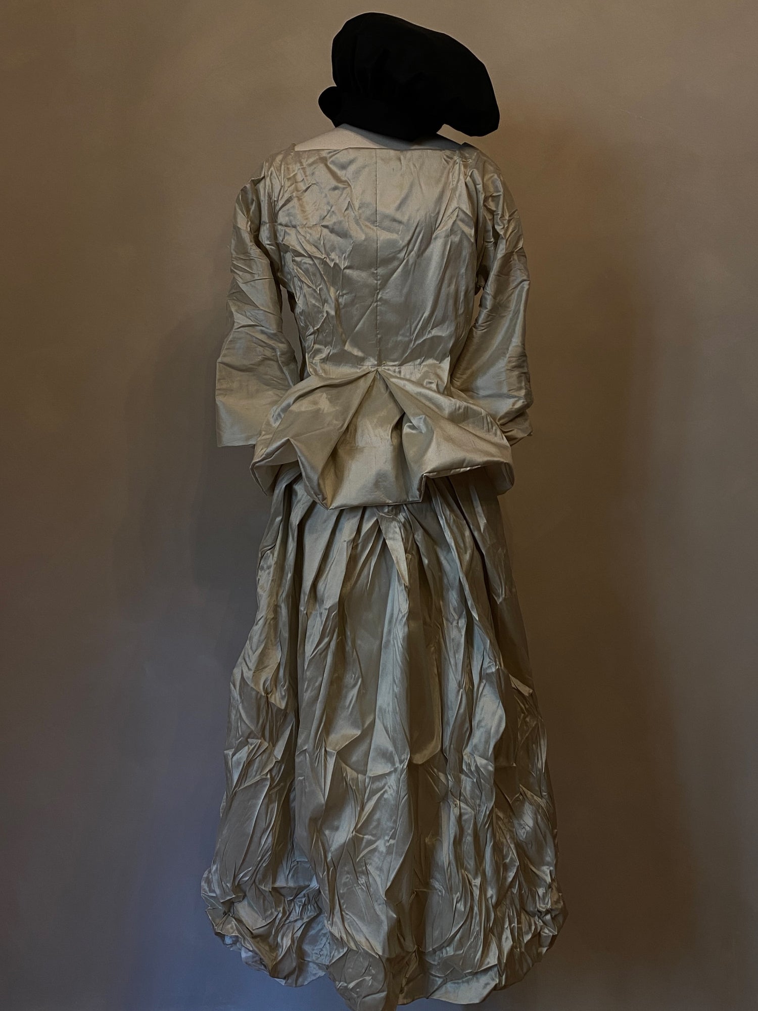 Conjunto de chaqueta y falda de seda dupioni en tono blanco roto, con forro de cupro.